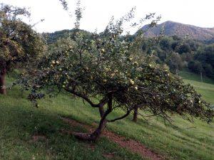 Na posestvu smo medtem odkrili še nekaj jablan in hrušk. Hruške so predvsem take, za sušenje ali fermentiranje, jabolka pa bolj poznih sort. So še zelo trda in pečke še nič ne črnijo.